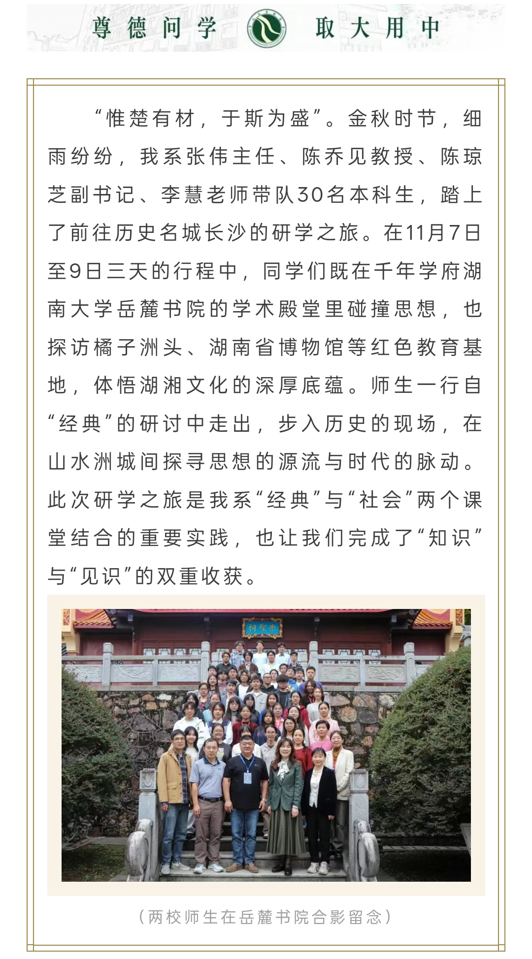导航痕迹 新濠天地赌场-新濠天地线上赌场网站 湘楚文蕴觅真知,学思践悟促成长——长沙研学之旅回顾 湘楚文蕴觅真知,学思践悟促成长——长沙研学之旅回顾 发布日期:2025-11-15 扫描此二维码分享