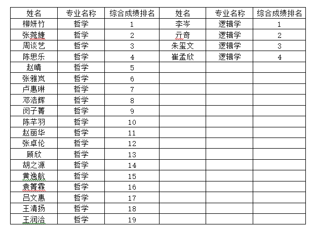 根据《中山大学推荐应届本科毕业生免试攻读研究生工作实施办法》(中大教务〔2025〕2号)、《新濠天地赌场 推免资格认定遴选细则》(哲学〔2025〕4号),经学生申请、院系审核,新濠天地赌场 2026届本科毕业生免试攻读研究生学位综合成绩排序如下: