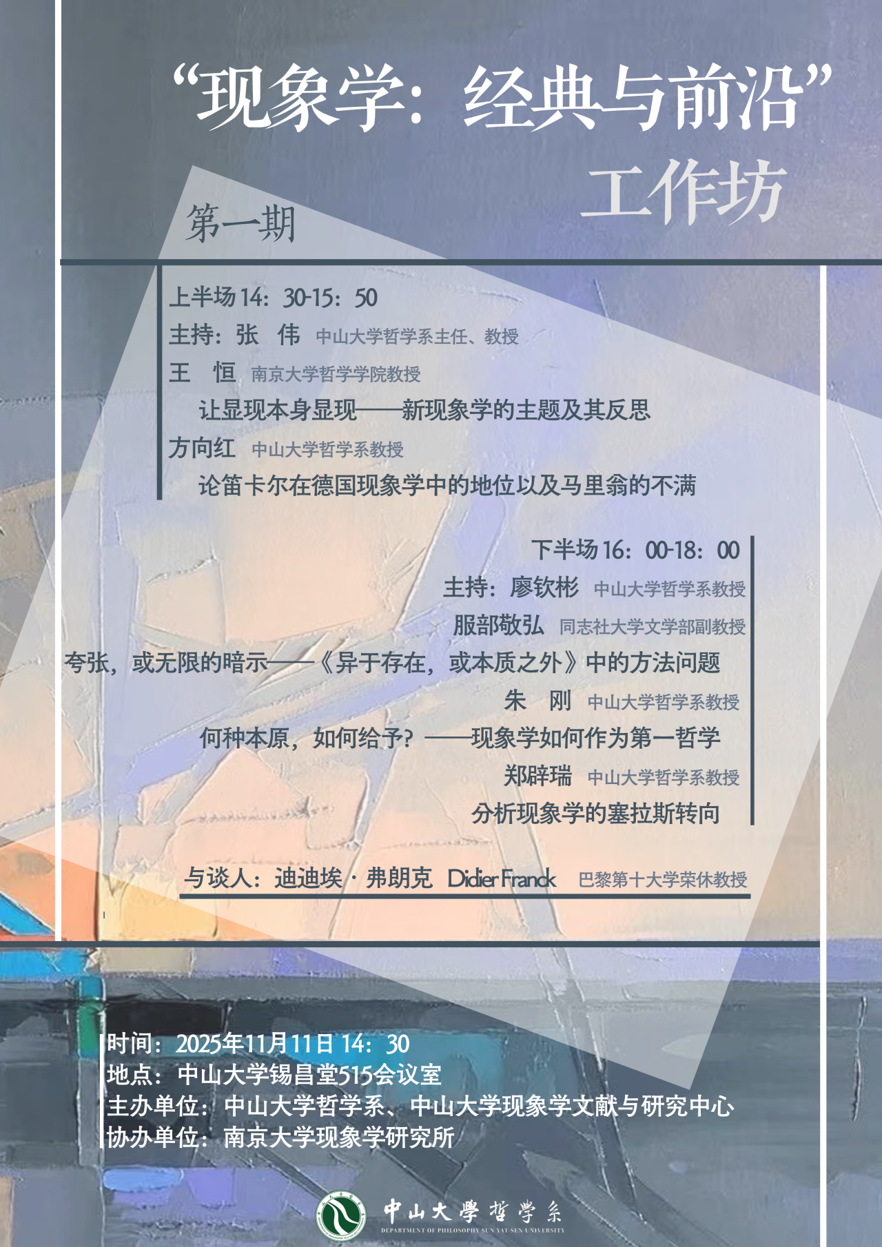会议预告 | “现象学:经典与前沿”工作坊(第一期)